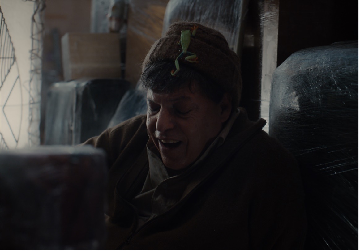 This realization becomes pressing toward the end of the film, when the smoke coming from the exterminators’ machines visually erases the family’s belongings (Figure 6), and the camera switches to show the parents and the daughters walking together, quietly, on an empty street—like ghosts. In the last shot, Josefina appears holding in her hand the only survivor of the frog massacre, its red eyes peeking out of the fist being the last thing we see, and the last thing that sees us (Figure 7). The frog’s survival could be read as the survival of memory, the sound it holds within constituting the acoustic and ghostly remnant of the Caracas the characters might never see again. This reading would be yet another example of the many ways in which “animals are overdetermined within human imaginaries.”27 Instead, I propose that we read that frog, not for everything it could be and mean, but for what it actually is: a displaced animal, a creature that is not where it is supposed to be, an involuntary actor in a story that ended up being its own story. Its silence—for the first time in the film, the frog is not singing—stages an encounter with “countless worlds of perception which are forever closed to us,” and as it fuses with the silence of the family members, it creates a commonality, a something shared between them that reframes this new chapter of their life not in terms of nostalgia, adaptation, or forgetting, but in light of what it means to live with the unsaid: with that which escapes knowledge and which escapes us.28 That which does not need translation. A mode of living that can be a painful shortcoming, but that can also be an opening toward finding belonging somewhere beside or beyond clear narratives of origin, and the comfort (and the violence) of what is familiar and familial.