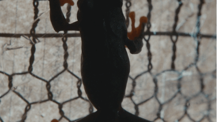 The inclusion of a Honduran and a Spanish actor in lieu of an all-Venezuelan cast points to the reality that there might not be that many Venezuelans—or at least, not that many Venezuelan actors—living in Paris, a fact that responds, among other things, to the immense economic privilege that would be necessary for people in Venezuela to migrate and settle in the European capital. Similarly, the presence of the red-eyed tree frogs is a consequence of the difficulty of finding coquí frogs in Paris—a species that has for the most part stayed (though not still) on the other side of the Atlantic. That Home does not fix these limitations through Photoshop (for the frogs) or sound alteration and accent training (for the actors) allows them to become loud reminders of what it means, really, to make a film about a Venezuelan experience outside of Venezuela: to remember and re-produce sounds that, being removed from the environment that created them and the bodies that make them, cannot ever be as they were, but must change, adapt, and become something else, something that ends up being at once familiar and unfamiliar.