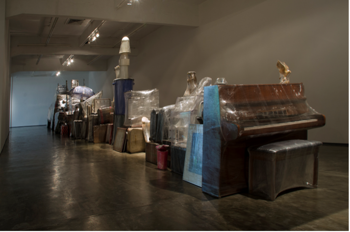 Though the story Home tells certainly stands on its own, the film also captures the “afterlife” of the over two hundred objects that, wrapped in polyethylene film, make up the installation Crisálida (chrysalis) (Figure 4), by Venezuelan artist Pepe López, Paloma López’s father. Originally shown at Espacio Monitor, Caracas, in October 2017, Crisálida was described by curator Miguel Miguel García as “the biggest, most compelling and most significant monument created until now in honor of the Venezuelan diaspora,” a diaspora that, as of 2024, encompasses more than eight million Venezuelans.15 Wrapped in plastic, the objects in the installation are suspended, practically useless; and yet, it is precisely because of that lack of practical functionality that they can protect and preserve the memories attached to them.