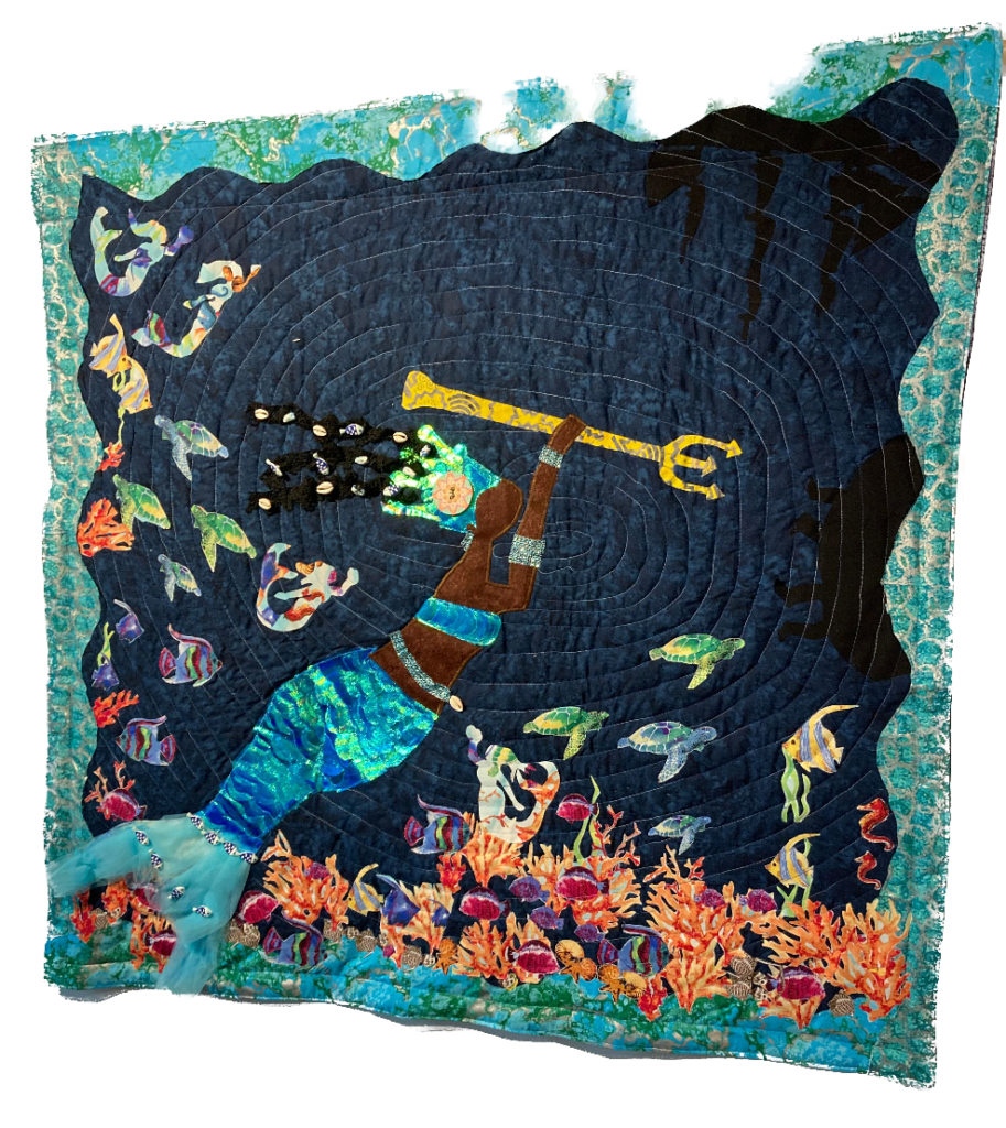 Cassandra Allen, Not Today. Fabric, Mixed Media. 2023. At Celebrating Black Mermaids: From Africa to America. City Gallery, Charleston, South Carolina. May 27, 2023. Photo by Jalondra A. Davis. Permission granted by artist.