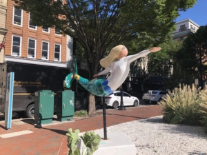 Figure 6. Not all the mermaids are built from short lived fiber-glass, Karen, in downtown Norfolk, is made from Bronze and is dedicated to a city employee.