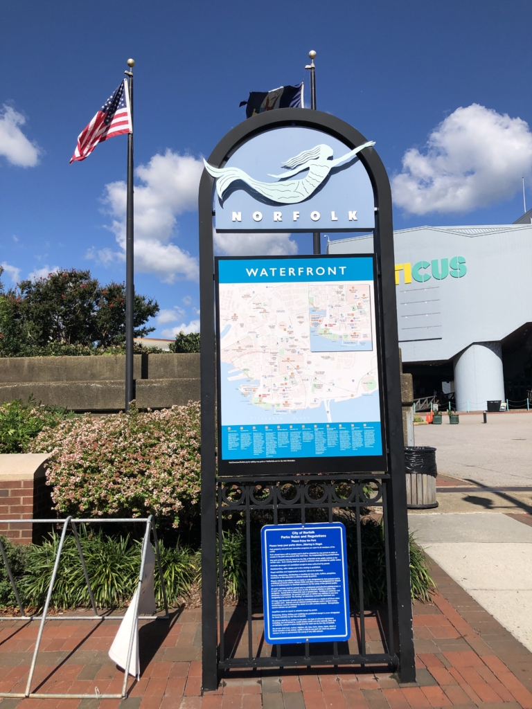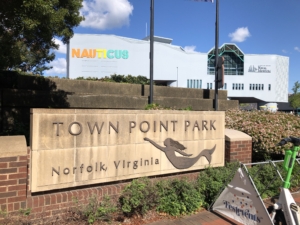 Figures 13-14. A map of Norfolk’s waterfront is adorned by a mermaid seeming to float from the sign. Town Point Park is waterfront property where annual festivals are held.