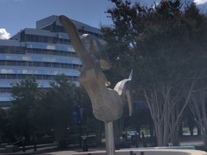 Figures 3 and 4. Outside of Norfolk’s Federal Building are two mermaids. Miss Definitely had a hat. Fiberglass is a temporal product not that sturdy for long-term outdoor art installations.