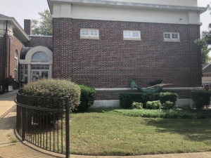 Figure 5. In front of Norfolk’s Van Wyck Public Library is Vannika Wyck. She used have a book in her hand.