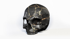 In Rachel Chu’s artwork Fractured Skull (Figure 1), a shattered human skull has been reconstituted via the art of kintsugi, whereby the fault lines of the repaired object, rather than being disguised, are made visible.1 Normally applied to ceramics, the kintsugi process foregrounds the effects of time on a given object, drawing the viewer’s focus to the piece’s stress points, and those edges most vulnerable to the vagaries of time.