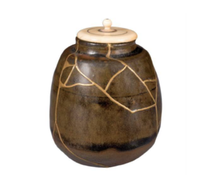 The kintsugi object is not the same as it was prior to its breaking; the visibility of its reconstruction brings our attention to its frangible qualities and enhances our understanding of its shape. Christy Bartlett, describing an 18th century Karatsu chaire, a form of Japanese tea caddy (Figure 2), explains how “branching lines of gold lacquer virtually diagram the point of impact [and] both surface interest and structural interest have been intensified by the effects of mending, [displaying] the slow inexorable work of time (sabi) or […] a moment of sharp demarcation between pristine or whole and shattered.”2